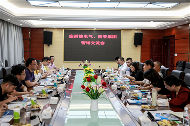为了让这“战略合作伙伴”关系进行得更顺畅,更充分的发挥出“强强合作”的应有效力,经双方商议,于2020年7月22日日下午,在广西南亚集团会议室,召开施耐德电气、南亚集团营销交流会。施耐德电气数字能效事业部总监曾旭峰先生、施耐德电气广西分公司总经理施浩先生、南亚集团董事长蒋学权先生、广西国电建设工程有限公司总经理谢仁秀女士、广西南亚电器有限公司总经理史济敏先生等,以及施耐德电气广西区销售经理、南亚集团的营销经理等30余人参加了此次会议。