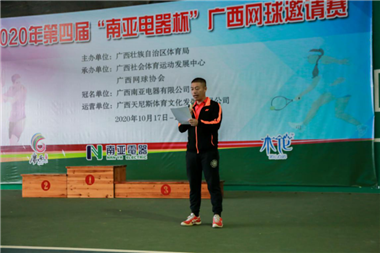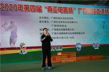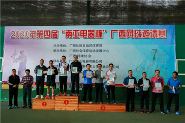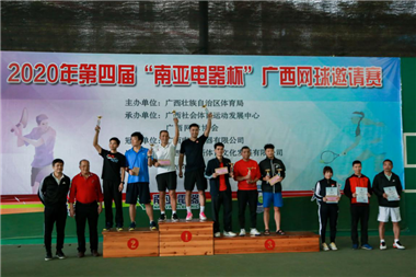 10月18日下午,2020年第五届“南亚电器杯”广西网球邀请赛在广西体育局青秀山训练基地网球场精彩落幕。此次邀请赛由广西壮族自治区体育局主办,广西社会体育运动发展中心、广西网球协会承办,广西南亚电器有限公司冠名赞助。