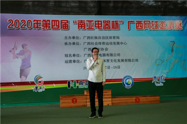回顾这五年来,“南亚电器杯”的赛事,大家都真切的感受到,“南亚电器杯”一年比一年办得好。运动员的竞技水平,也是一年比一年的高,这让我们南亚电器公司,心里充满了一种自豪感。这一届“南亚电器杯”广西网球邀请赛的顺利举办,彰显了南亚电器公司作为民营企业,有着强烈社会责任感,也体现南亚电器公司希望推动和普及网球运动的决心,通过网球激发城市活力,给社会传递更多正能量,让更多人感受网球魅力、体验网球快乐,为推动全民健身和全民健康、建设体育强国做出贡献。