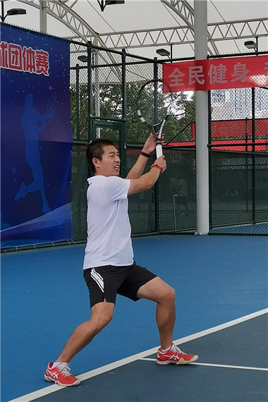 决赛在22日下午举行。南宁市网球协会队与南亚电器队都是广西业余网坛有名的两支队伍,选手实力相当,水平接近。比赛从中午13:00开始,第一场男双A组,南亚电器队派出实力超凡的彭涛、蔡文龙组合对阵南宁市网协队的袁晓晨、梁宏明组合。经过近一小时的激战,南亚电器队稍稍占了上风,以6-4的比分,先拨头筹,大比分1:0领先。南宁市网协队也不是那么轻易认输的队伍,在接下来的混双比赛中,南宁市网协队的韦雪亮、孙晓红组合对阵南亚电器队的覃璟、赖玥组合,此战中,配合得更默契的南宁市网协队,充分发挥了男主攻,女主守的优势,以6-3,扳回了一局,让总比分,来到1-1。双方又重新站在同一起跑线上,比赛的悬念、观众们的神经,又再次被挑起来了。接着,男双B组,南亚电器队派出了攻守平衡的陈晓龙、肖伊组合对阵南宁网协队的周桑、王一峰组合。此战,南亚电器队充分发挥了自己的实力,酣畅淋漓的以一场6-2比分,快速的结束了战斗,为南亚电器队,又领先了一分。