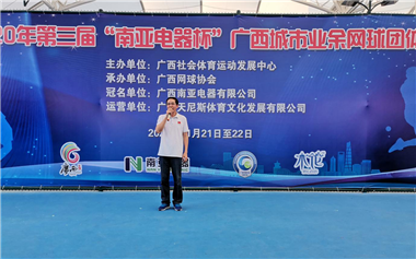 南亚电器公司,是一家生产高低压配电设备的专业公司,公司产品遍布广西各地,深受广大客户的欢迎与肯定。公司在蒋学权董事长的带领下,企业不断的感恩社会,回馈社会,不但积极参加政府的各项扶贫活动,还长期注重于社会公益活动, “南亚电器杯”广西城市业余网球团体赛,就是南亚电器公司与广西网球协会,共同培育与推动的一项重要赛事。