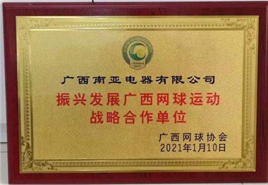 2021年1月10日,在广西体育局青秀山体育基地网球馆内,广西南亚电器有限公司与广西网球协会,就广西业余网球事业的下一个五年发展,签订了战略合作协议。