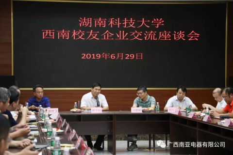 湖南科技大学是国内一所重点大学,培养出了许多优秀学生,他们带着母校的优秀品质,带着母校的希望,在各行各业中,成功的创立了自己的事业,成为各领风骚的一方知名人士。今天,为了让校友相互间更好的交流各自的成功经验,共同分享校友间的各种资源,在湖南科技大学母校的组织下,湖南科技大学西南六省校友联谊交流会,在广西南宁举办。同时,广西南亚电器有限公司,成为其中的一个“校友联谊及交流经验”的一个分会场。
