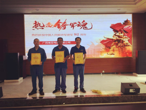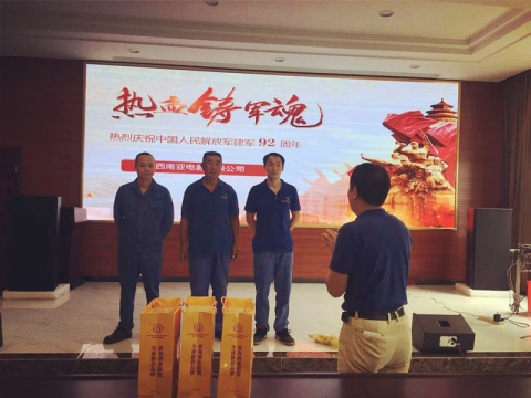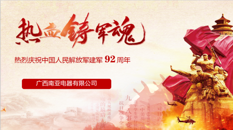 “八一”是我们所有人都为之而热血沸腾的节日。今天,正值中国人民解放军建军92年之际。广西南亚电器有限公司为公司退伍军人,举办了一个热烈仪式---向退伍军人,致敬!