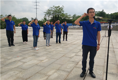 在烈士纪念碑公祭广场党旗下,集团党支部书记、副总经理梅仕坤同志带领党员重温入党誓词,牢记自己作为党员的神圣使命和庄严承诺。“我志愿加入中国共产党,拥护党的纲领,遵守党的章程……”面对鲜红的党旗,党员们举起右手,一字一句,声音洪亮,慷慨激昂,表达了为党的事业奋斗终身的信念与决心。