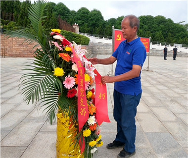 在烈士纪念碑公祭广场,面对巍峨的烈士纪念碑,全体党员现场奏唱《中华人民共和国国歌》。国歌唱毕,全场肃立,向为民族独立、人民解放、国家富强、人民幸福而英勇牺牲的革命烈士脱帽默哀。随后向革命纪念碑敬献花篮,集团老党员、副总经理方毅文同志仔细整理花篮缎带,向革命烈士致以崇高敬意。